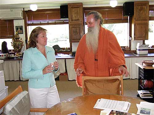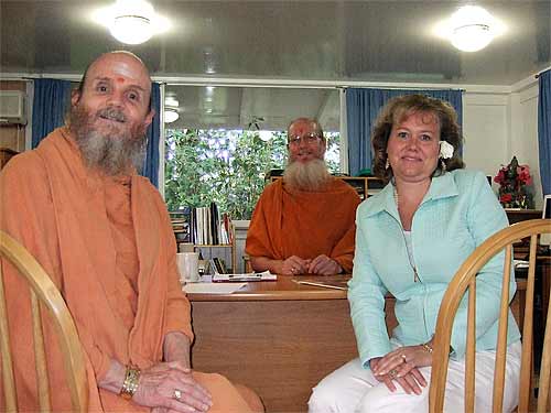 Bodhinathaswami and Shanmuganathaswami met today with Stelter Company's senior planned giving consultant, Johni Hayes. She was not able to see them during their visit with the Stelter team in Des Moines, Iowa, on August 8th. Vacationing on Maui this week, we invited her to fly over to Kauai for the day.
