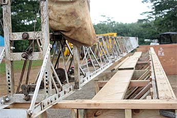 A mechanical screed has been installed that will move across the top of the slab and perform the job of causing the gravel "aggregate" to drop below the surface, bringing up the cement paste for a smooth finish.