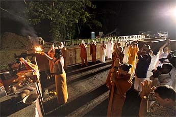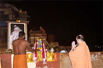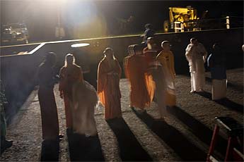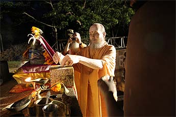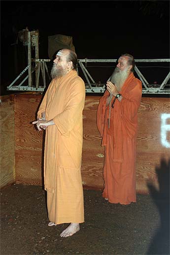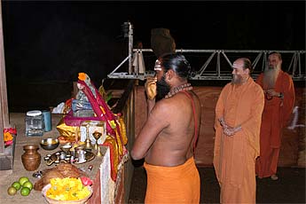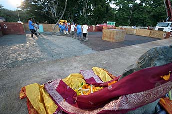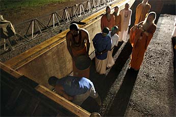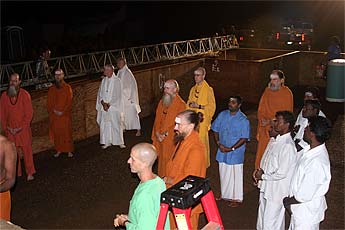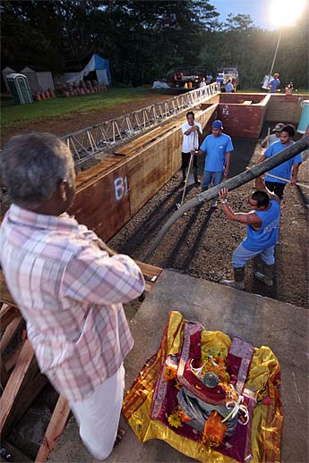 The auspicious day of the Nandi Mandapam concrete pour arrived and all the monks went out early to the temple site for the 5:30 am worship.