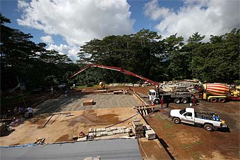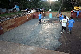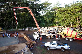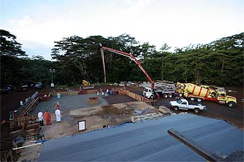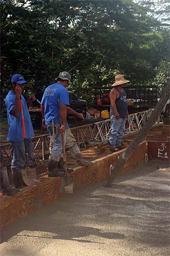 Over 50 cement trucks were required! The video is just a partial one, and there will be more of this historic milestone on TAKA tomorrow. Congratulations to Craig and his amazing staff. And to the specialists who taskled varied parts of the project: Pat Debusca, Plant Manager at Honsador/Glover, Richard Basulto and Bill who operated the power screed, Jesse and Mark Evans from Small Line Concrete Pumping, father-and-son who did all the pumping, and to our testing engineers. Thanks too for the veggie pizza, Kuuipo!