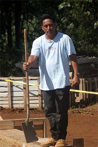 Craig Kawakami, the owner and general contractor on the job put his hand to the sacred stone as well.