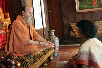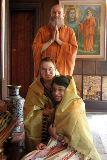 Mr. and Mrs. Tamil and Teresa Anban from Connecticut, getting a shawl blessing from Bodhinatha for their 10th wedding anniversary.