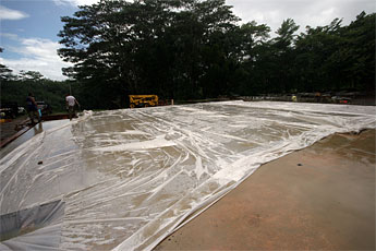 A shot from this morning. That's not plastic but burlap that covers the slab, soaked with water.