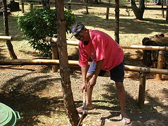 .... while Somandiren is cutting a few fine trees in front of the Mandapam. These trees when growing tall would actually be a real risk to the Mandapam should a cyclone hit the island.
