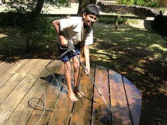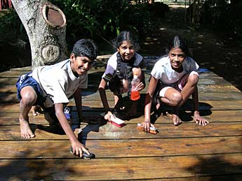 Sivarathna, Jambalini and Giradevi are having some real fun brushing...The planks will then be polished and varnished once they are dry.