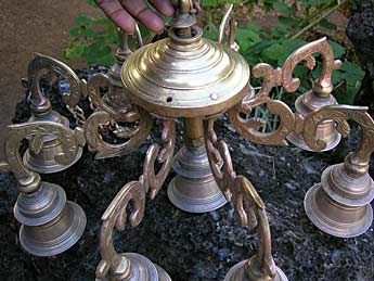 The large bras bell which is always rung at the height of the puja needs some polishing. Our ladies are ready for this seva.