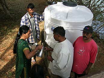A new water tank has been donated to the park. It will be used for the first time on Ganesha Chaturthi. The sishyas have been fixing it into place while the ladies are serving some tea to karma yogis.