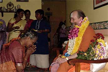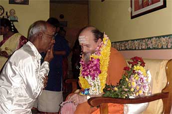 Bodhinatha is greeted by 75 to 100 devotees from the Penang community at Thanabalan and Ahila Ganesan's home