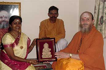 Ahila and Thanabalan present a gift, a sandstone Ganesha from Thailand.