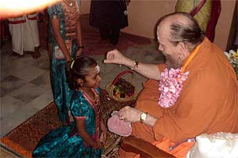 Those taking care of offerings at the small Pancha Ganapati shrines had a real busy time. Thousands of coconuts offered to the Lord, were broken on that day! A real humble seva for our members and HA students.
