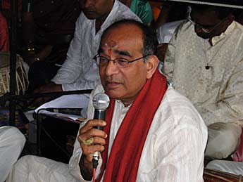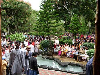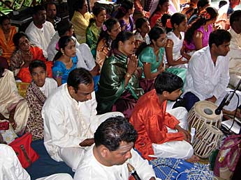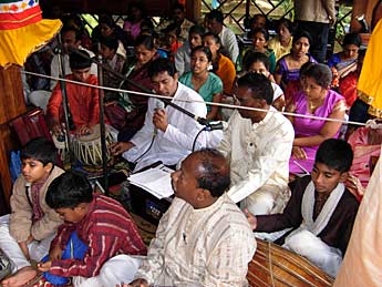 The members of the Spiritual Park are leading the bhajans. All devotees form the chorus. The mandapam is filled with inspiring devotional songs.