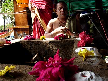 While those close to the Homa are experiencing the intense heat of the fire, many devotees outside are quietly worshipping in the cold rain. Both are happy today to be receiving Lord Ganesha's Blessings...