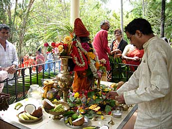 On Ganesha Chaturthi Hindus of the island make it a duty to worship this benevolent God in their home shrines, local temples or pilgrimage to the Spiritual Park. Gurudeva Sivaya Subramuniyaswami, founder of the Spiritual Park said of His vision of the Park:"It is destined to become a pilgrimage site of great renown in the Indian Ocean."
