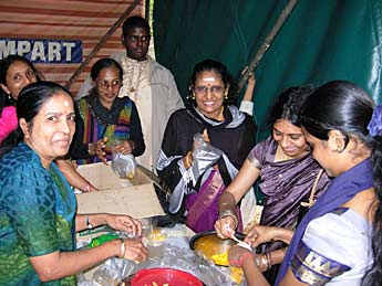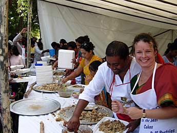 At the Food station a large crowd was queued up to be served. Here is Kulapati Sivakumaren and Kulamata Kavita happily serving everyone.