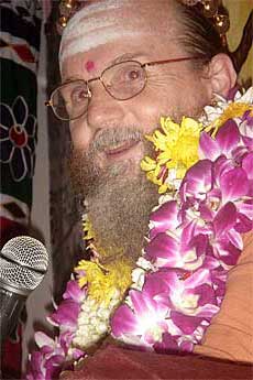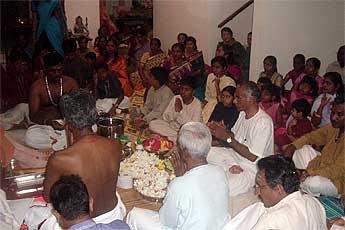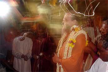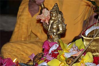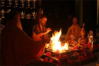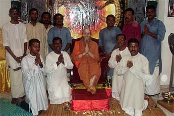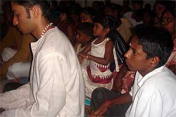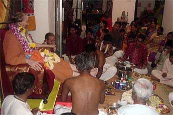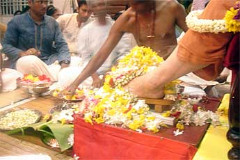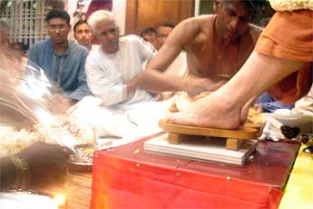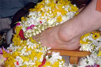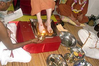 Soon everyone got settled for the pada puja, ceremonious worship of the feet of the satguru.