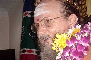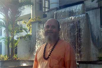 On the 6th morning in Malaysia, Bodhinatha paid a visit to Swami Guha Bhaktananda at his Sivananda Ashram, Batu Caves. Swamiji is head of the Divine Life Society in Malaysia. He has served here for about 20 years. Here Swamiji is greeting Bodhinatha.