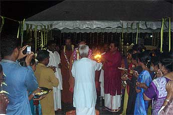 The newest edition to the mission satsang, just 30 days old, gets a special blessing--the child of Navukarasu and Mohana Vilashiny. The little girl's name is is Yehanthini.