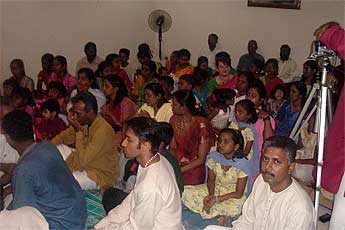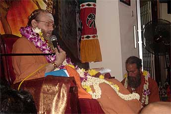 Here is giving an inspired talk to the sishya in Malaysia at a satsang of in Klang.