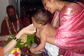 �and a first feeding for the child of Sivanathan and Puvana, whose name is Hiteshvar Skandanatha