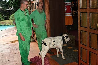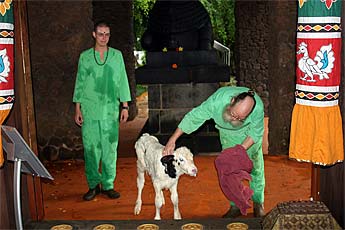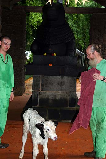 Shanmuganathaswami and Sadhaka Jivanandanatha, the team who take care of all our Pillaiyar Kulam business matters, are also our cow caretakers.
