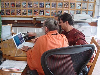 Larry showed Palaniswami his current work, making videos for yoga therapy, with seminars and certification provided through Loyola Marymont University in LA.