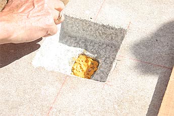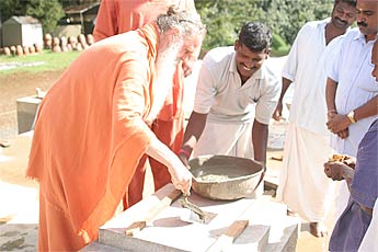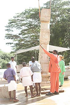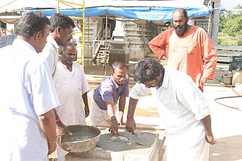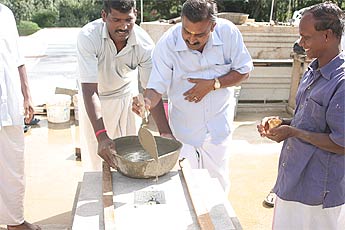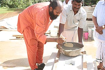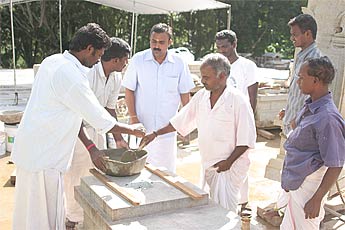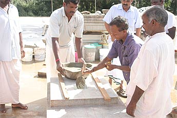 Yoginathaswami puts sandalwood paste into the hole.