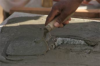 Each one then places a little mortar.