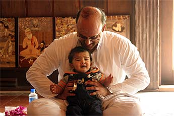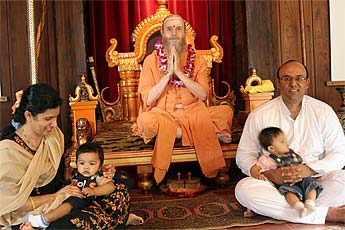 Pilgrim family Shankar and Sri Mallampalli are here on their final day, having darshan with Bodhinatha.