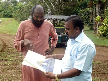 If you missed the short video of his explanations of the pillar placement yesterday, go back to yesterday and you can still see it. We are so inspired by Sthapati's visit and all the gifts of knowledge and design he left with us. We learned today that his grandfather designed the Siva Temple in Colombo, Sri Lanka, and did all the murthis and shrines for Ramana Maharishi's ashram.