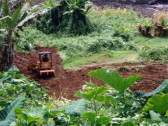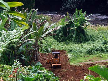 Yesterday a bulldozer came to repair the road that was covered in mud during the March flash floods on Kauai.
