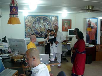Shankar and Sri Mallampalli brought their twins to the publications building today, and were joined by Mr. and Mrs. Balasubramuniam from Sydney.