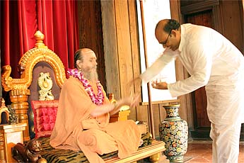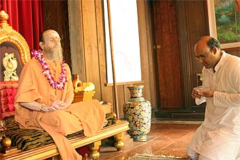 Bodhinatha blessing some rudraksha beads that our pilgrims will take home and wear.