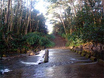 To get there one has to cross this ford, which may be awash when the river is high, but if the water is not too high, you just drive through.