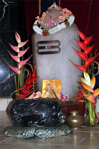After some weeks of being left outside to be refreshed by the sunshine and tropical rains, sitting by our stream, the green volcanic stone gifted by a 94-year old Choktaw medicine women is now resting inside Kadavul temple in front of the Maha Sphatika Lingam.