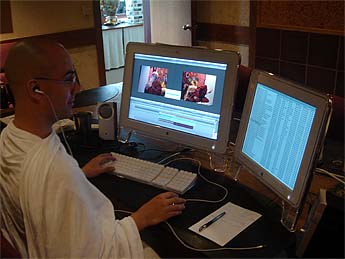 In preparation for annual Gurudeva Mahasamadhi, Sivanadiyar Satya is editing Gurudeva's autobiographical video that was given during the Alaska Innersearch, taking the various classes and putting them all into one video.