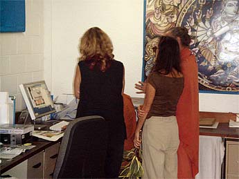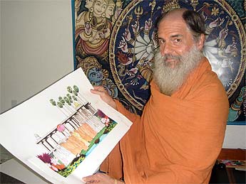 A local artist who was commissioned to do a piece of our new booklet "Kauai's Hindu Monastery" has brought her finished work today.