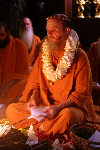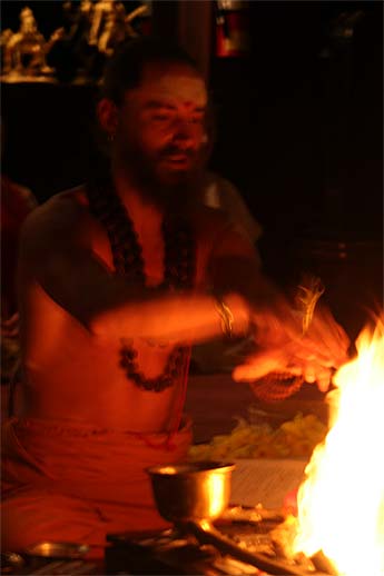 Bodhinatha offers prayers to the homa fire as we begin a short 4-day phase.