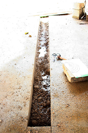 John is a licensed contractor here on Kauai who has been working with us for decades, and as a result has done innumerable important jobs for us. Thanks, John! Here we see a more or less completed section where drainage piping will soon be placed.