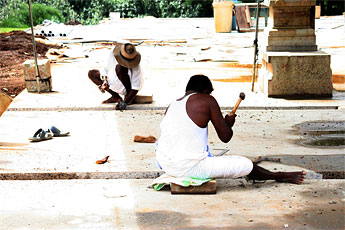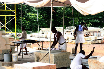 One always knows when the silpis are working - even if they're out of viewing range! The "clink, clink" of their tools reminds us throughout the day of how efficiently Gurudeva's vision is truly coming to fruition.