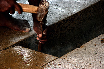 Such time consuming work may appear to many as overwhelming or even mundane. Amazingly, our silpis seem to be unfamiliar with the concepts of frustration or impatience. With each strike of the chisel, they are performing Sivathondu. It's not easy, but like Gurudeva said, "Anything worthwhile is not easy."