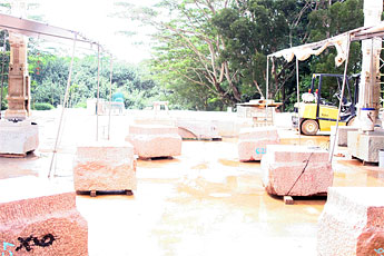 Here are some of the base stones for some upcoming pillars...They are rose-colored because they are at the floor level and will match the rose flooring pavers when they are installed. Yes, the floor will be two feet above the existing foundation level which you see below.