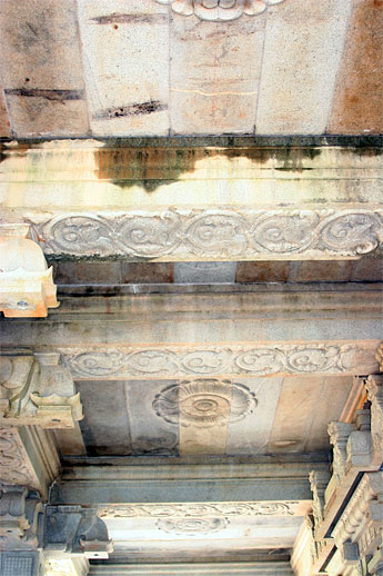 No, this is not an ancient 2,000-year-old temple in a remote Indian village. It's Iraivan pretending to be old today. Not long ago, the roof beams were set into place by our silpis. But teh lighting today makes them look well aged. Of course, we can't neglect to thank the ever-jovial Larry Conklin for helping us with his mighty crane. What a beautiful ceiling to gaze up at while musing over the nature of vastu shastra - temple metaphysics.