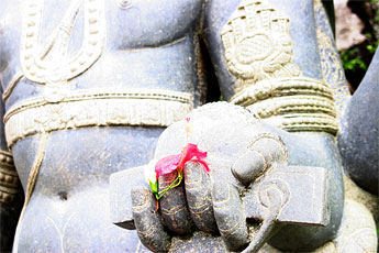 Just as Ganesa gracefully shades Himself from the late morning rays, He lovingly shields us from the lower realms of the mind.