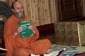The second gift today was a book on "Planned Giving Essentials." Bodhinatha was the master mind behind the Hindu Heritage Endowment that he created with Gurudeva's guidance in early years and he continues to oversee the growth and development of HHE as Gurudeva had done. One important focus is on helping everyone put HHE funds into their wills, a process also known as "planned giving."