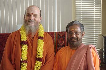 Bodhinatha arrived safely in California. Here he is with Swami Shantanand of the Chinmaya Mission at a satsang gathering...