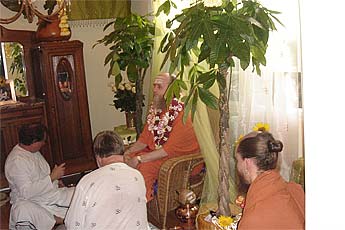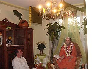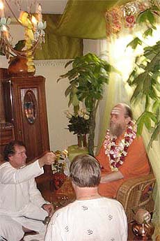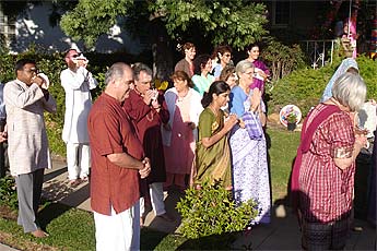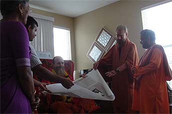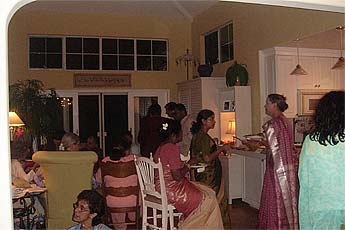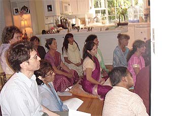Late afternoon early evening member/student/devotee satsang at the Mahadevan's home with Dasan and Sadhunanthan performing the Guru Puja with about 30 in attendance.
