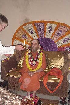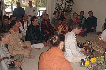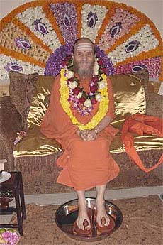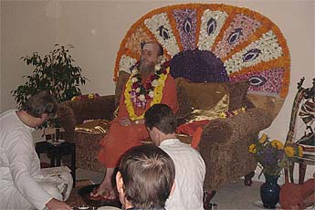 Bodhinatha sits down for the pada puja.