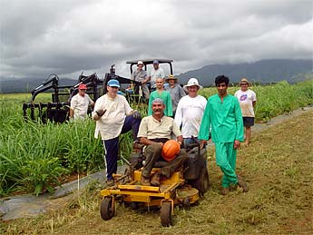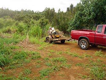 Tandu Sivanathan arrived with his riding law mower to see if it would tame our tall guinea grass. It did work, but a bit slowly in our wet and overgrown conditions.