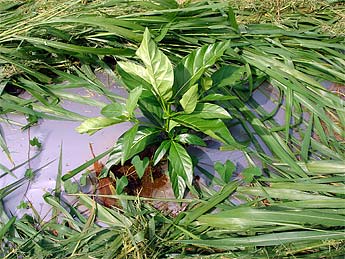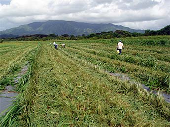 The noni plants are growing rapidly. These were just planted July 29th, and are already up to two feet high. They are set in plastic mulch with a drip line for irrigation. The field is being managed according to the rules for organic farming.