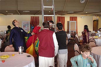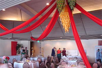 Chandran and Sahanadevi Param family engineered this beautiful decoration to mimic the look of an Indian tent. It really vitalized the room